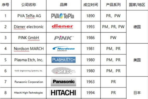不過近幾年,國內等離子清洗機發(fā)展很快,因為進口機器價格貴,如果國產機可以達到同樣的效果,國內的公司當然愿意選擇國產品牌,東信的銷售經理常年在外面拜訪客戶,根據他們對這些半導體企業(yè)的走訪,發(fā)現(xiàn)國內半導體行業(yè)用的多的品牌包括下面的這一些,我整理出來了一個表格,給大家做做參考